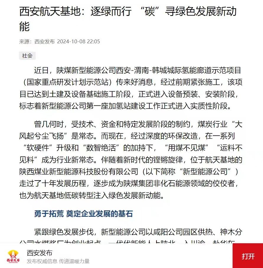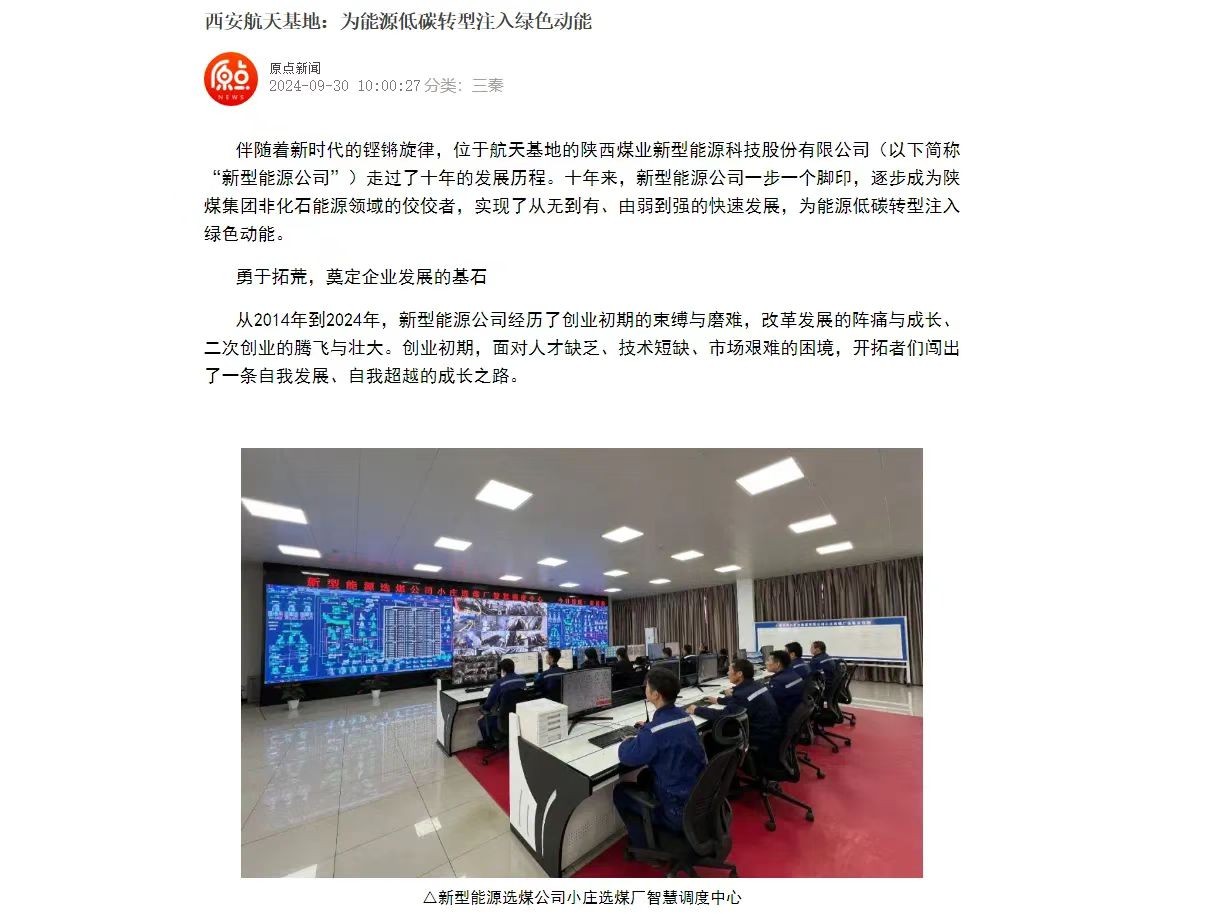 曾幾何時(shí),受技術(shù)、資金和特定發(fā)展階段的制約,煤炭行業(yè)“大風(fēng)起兮塵飛揚(yáng)”是常態(tài)。而現(xiàn)在,經(jīng)過(guò)深度的環(huán)保改造,在一系列“軟硬件”升級(jí)和“數(shù)智絕活”的加持下,“用煤不見(jiàn)煤”“運(yùn)料不見(jiàn)料”成為行業(yè)新常態(tài)。伴隨著新時(shí)代的鏗鏘旋律,位于航天基地的陜西煤業(yè)新型能源科技股份有限公司(以下簡(jiǎn)稱“新型能源公司”)走過(guò)了十年的發(fā)展歷程。十年來(lái),新型能源公司一步一個(gè)腳印,逐步成為陜煤集團(tuán)非化石能源領(lǐng)域的佼佼者,實(shí)現(xiàn)了從無(wú)到有、由弱到強(qiáng)的快速發(fā)展,為能源低碳轉(zhuǎn)型注入綠色動(dòng)能。